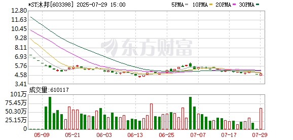 7月29日,*ST沐邦(维权)(603398)发布公告,控股股东江西沐邦新能源控股有限公司质押其持有的1000万股股份,占其所持股份的11.42%及公司总股本的2.31%;截至公告披露日,累计质押股份为8330万股,占其持股总数的95.15%及公司总股本的19.21%。
